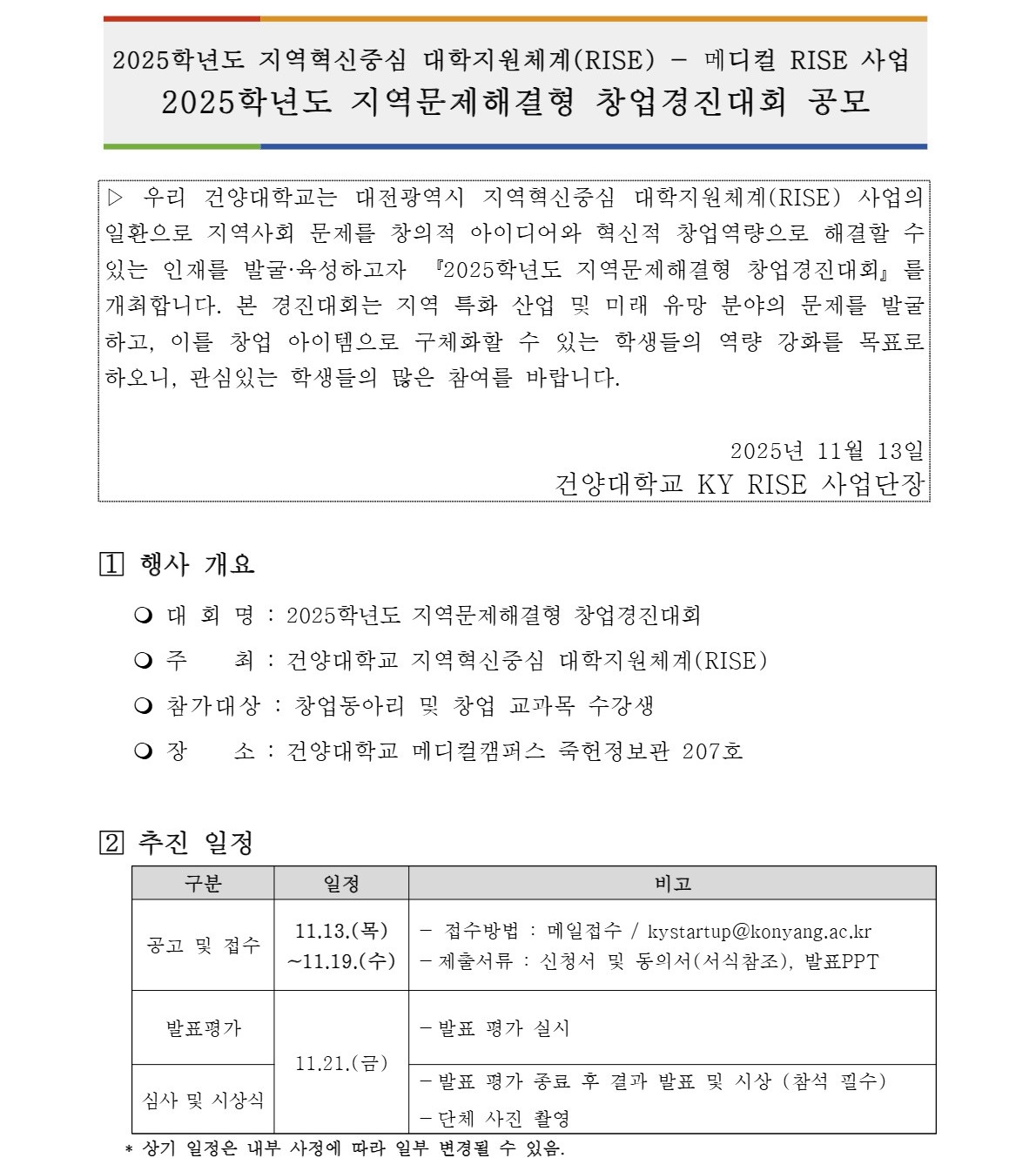 | 제목 | 2025학년도 지역문제해결형 창업경진대회 공모 안내 | ||||