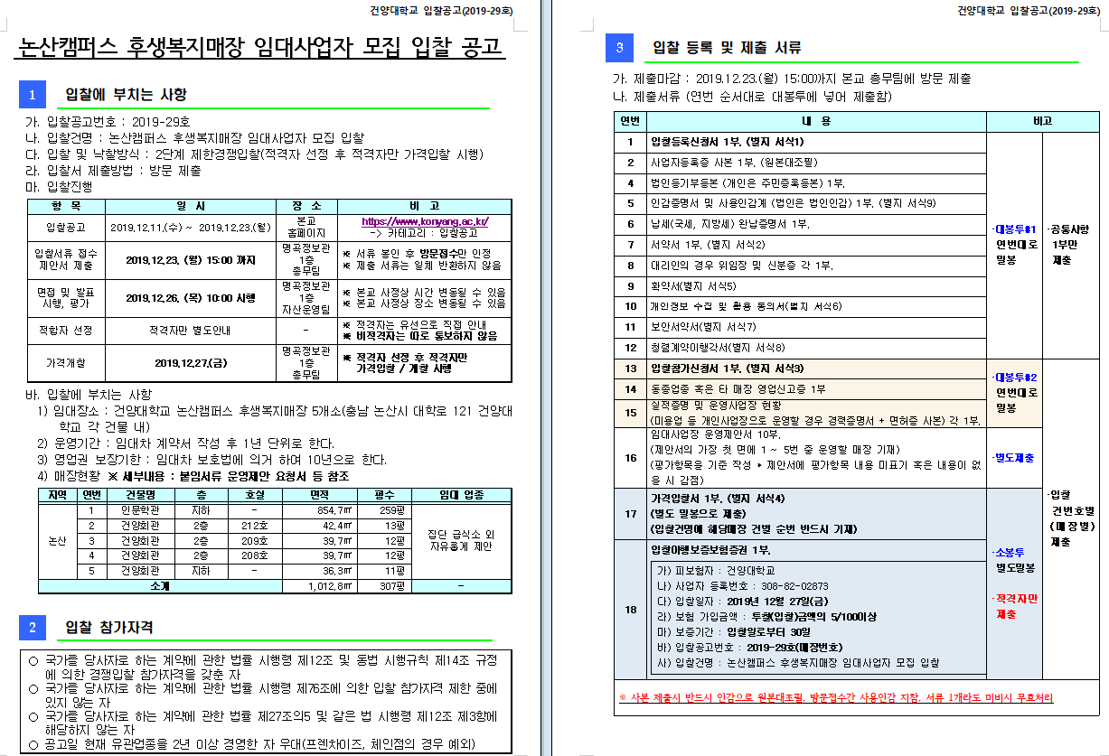 | 제목 | (2019-29호)논산캠퍼스 후생복지매장 임대사업자 모집 입찰 | ||||