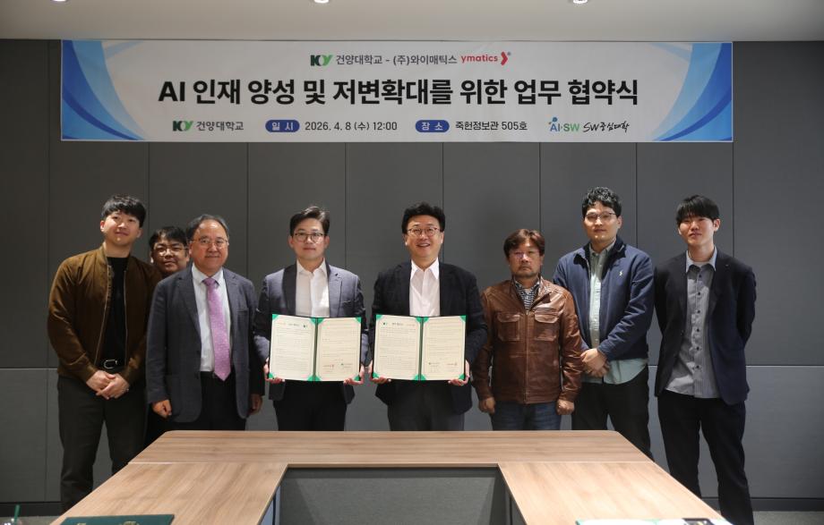 | 제목 | 건양대 AI·SW융합대학-(주)와이매틱스 AI 인재 양성 및 AX 생태계 조성을 위한 업무협약 체결 | ||||